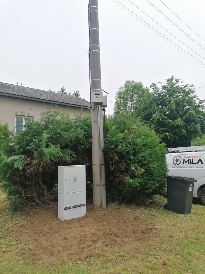 - Přeložení elektroměrného rozvaděče z budovy na hranici pozemku.