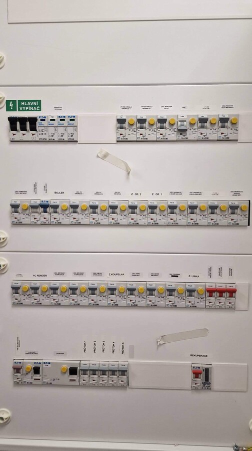 - Kompletní elektroinstalace rodinného domu, realizace nového přívodu elektrické energie, instalace hromosvodů, elektro příprava pro tepelné čerpadlo, rekuperaci, solární panely, EZS a CCTV.